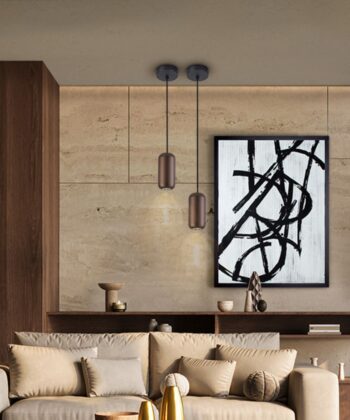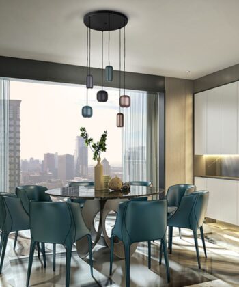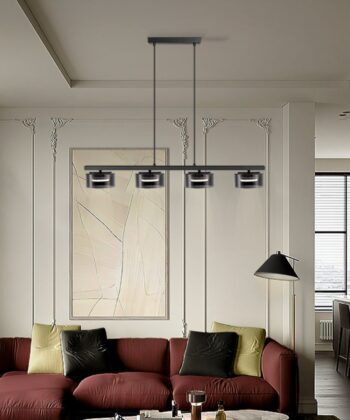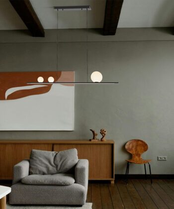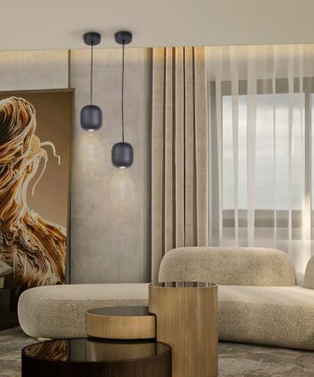 Acabamento: alumínio escovado em preto e vidro branco opalino