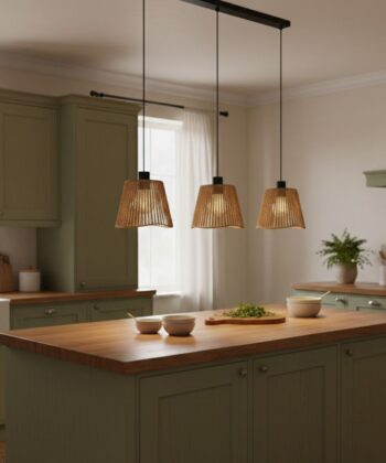 Acabamento: fibra de vidro natural combinado com elementos metálicos brancos