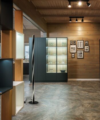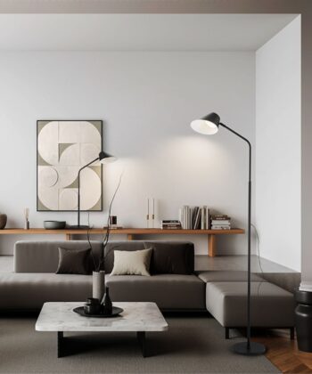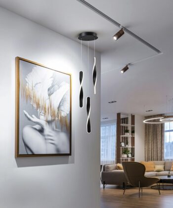 Acabamento: alumínio escovado em preto e vidro branco opalino