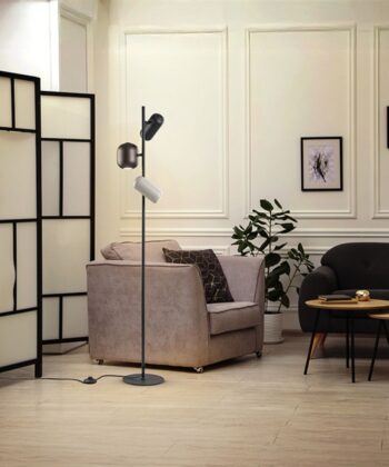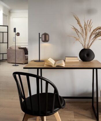 Acabamento: metal preto mate, castanho escuro e cinzento claro