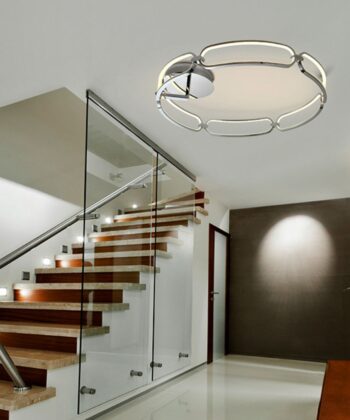 Acabamento: alumínio escovado em preto e vidro branco opalino
