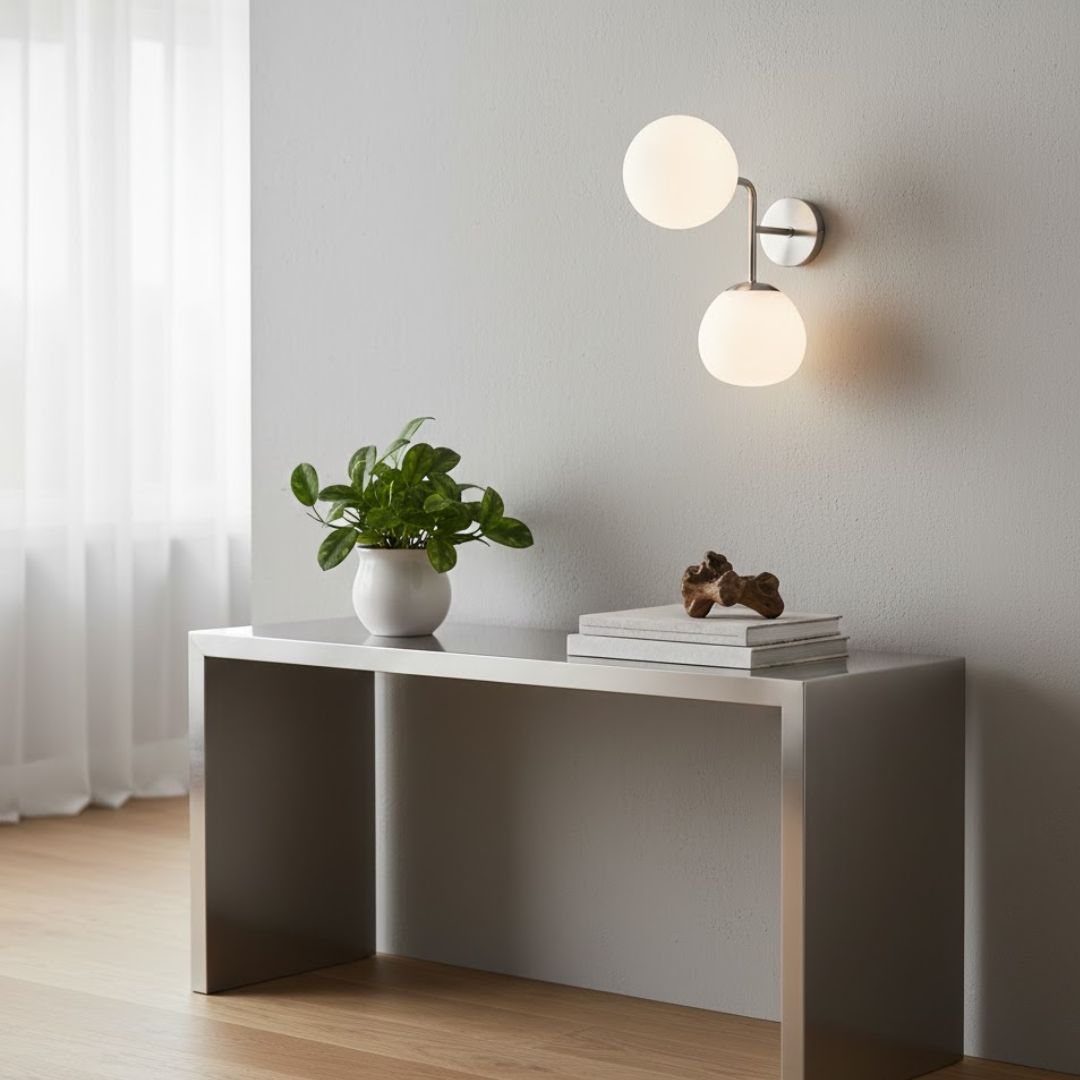 A coleção Erich, da Maytoni, agrupa pendentes, apliques, candeeiros de mesa e de pé num estilo que revisita o retro com elegância contemporânea. A estrutura metálica (latão rosa ou níquel) sustenta suaves globos em vidro opalino ou alabastro texturizado, oferecendo uma iluminação difusa e acolhedora. Cada peça permite ajustes de altura ou posição para máxima versatilidade. Ideal para salas, restaurantes, hotéis ou espaços de receção, Erich combina a severidade minimalista das linhas metálicas com a suavidade visual dos difusores, resultando numa presença estética marcante.