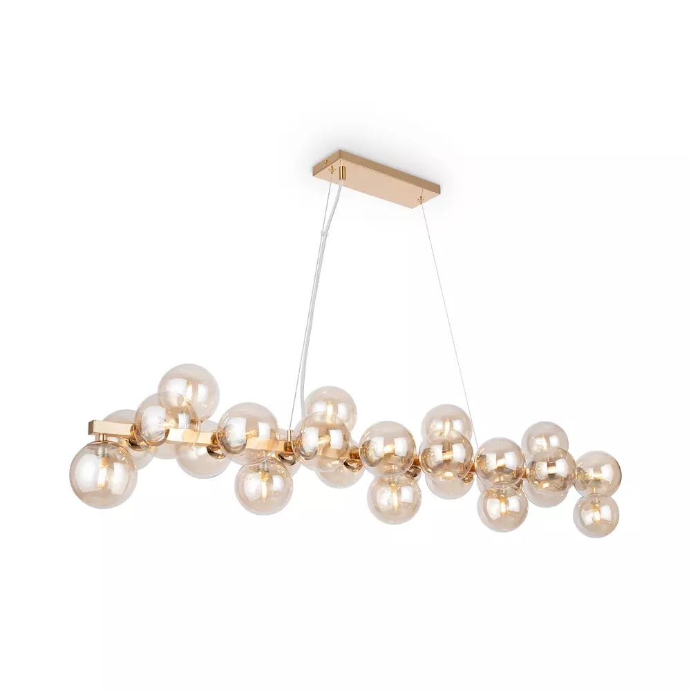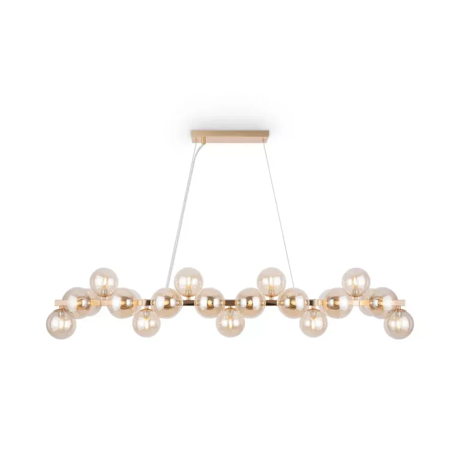 A coleção Dallas apresenta composições esculturais em grande escala formadas por numerosas esferas de vidro soprado. Os tons coloridos ou transparentes, montados em ramos de metal polido, difundem e suavizam suavemente a luz, criando um efeito visual sofisticado. As luminárias estão disponíveis nas cores ouro, cromo e latão. A altura da suspensão é facilmente ajustável através do comprimento do cabo. A série inclui luminárias de teto, pendentes e candeeiros de parede, oferecendo flexibilidade para uma ampla variedade de layouts de interiores.