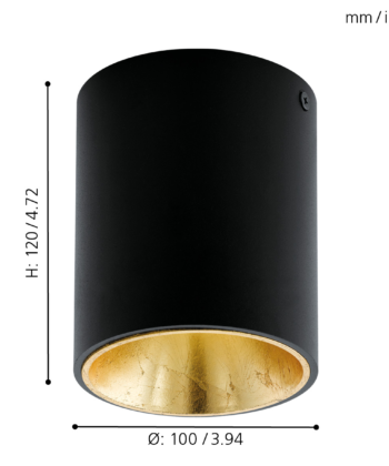 O foco de teto POLASSO apresenta um design cilíndrico de alumínio preto com uma superfície interior dourada. Os LEDs integrados produzem uma agradável luz branca quente. O design minimalista complementa os interiores modernos, proporcionando uma solução de iluminação elegante para qualquer espaço, seja na cozinha, sala de estar, quarto ou corredor.