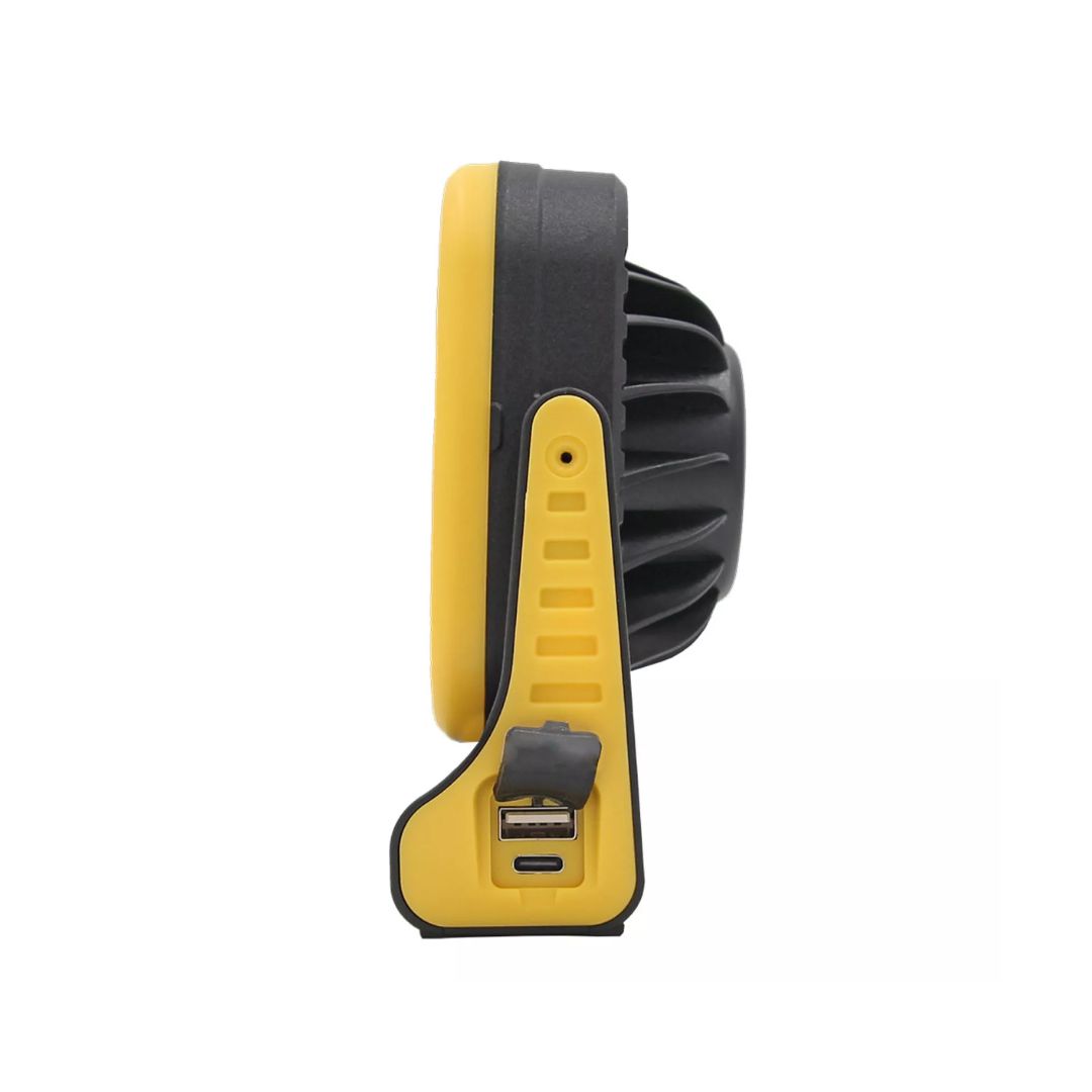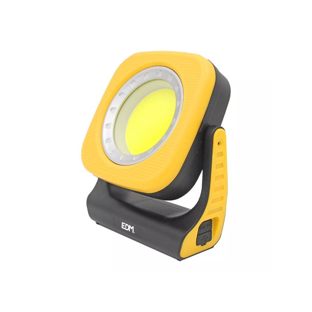 Foco de trabalho LED recarregável. com 2 modos de luz: 1.000 lm / flash. Luz ajustável 5% – 100%. 10 W, 6500k. Função Power bank, cabo USB tipo C. Inclui 2 bateria de 1.200 mAh. Indicador de bateria. ìndice de proteção IP42. Iclui gancho e imans na base e cabeça giratória 180º.