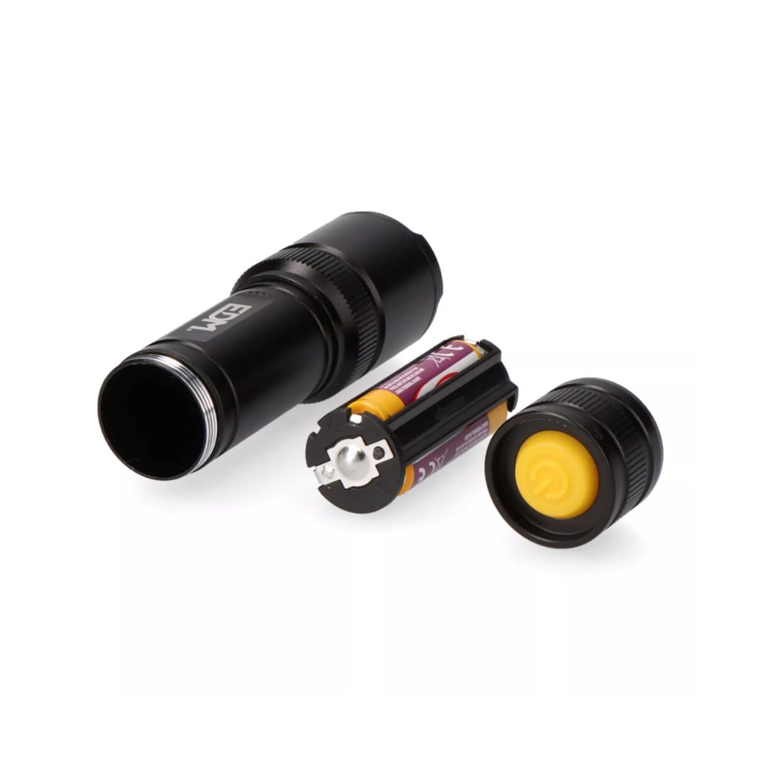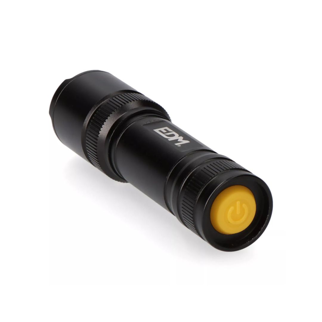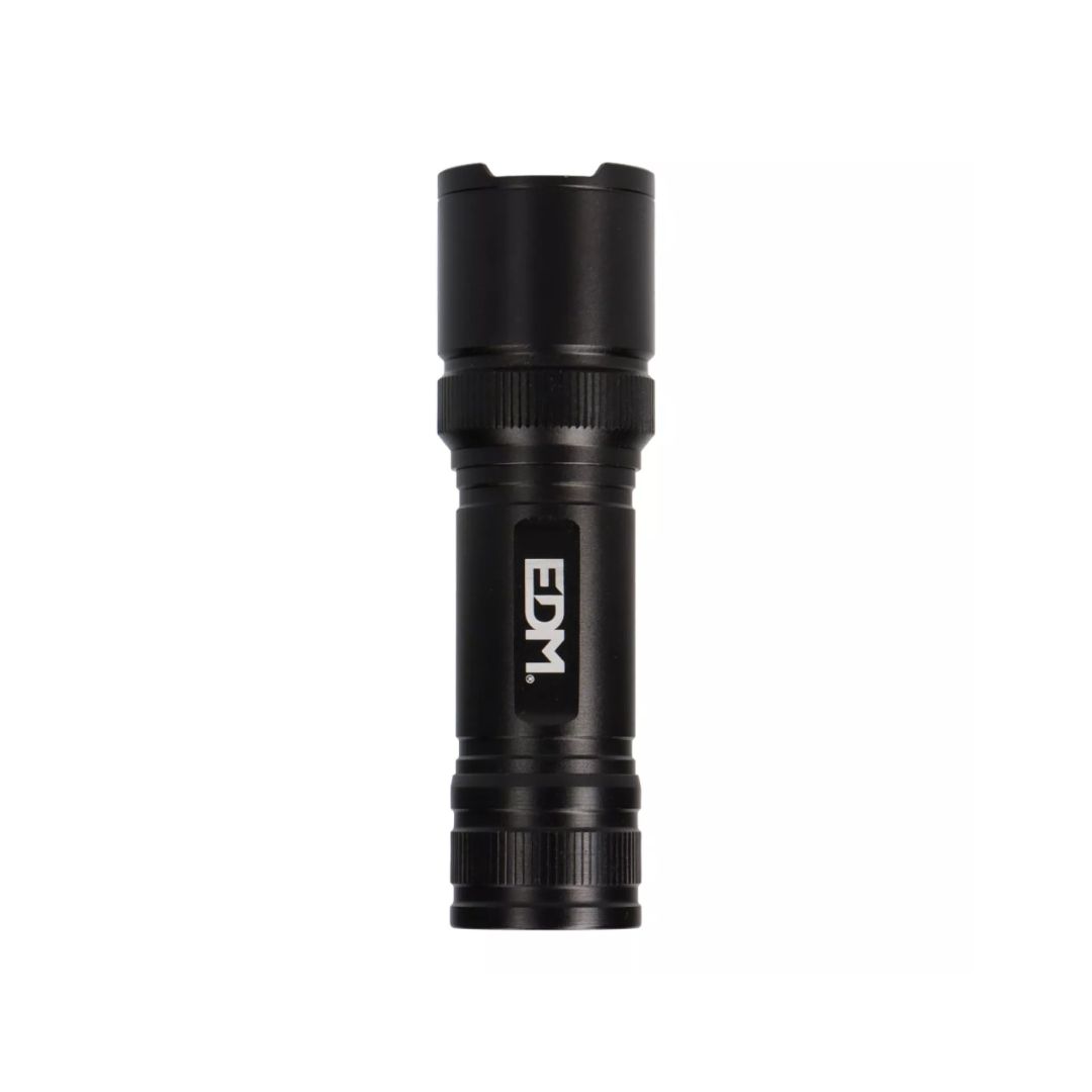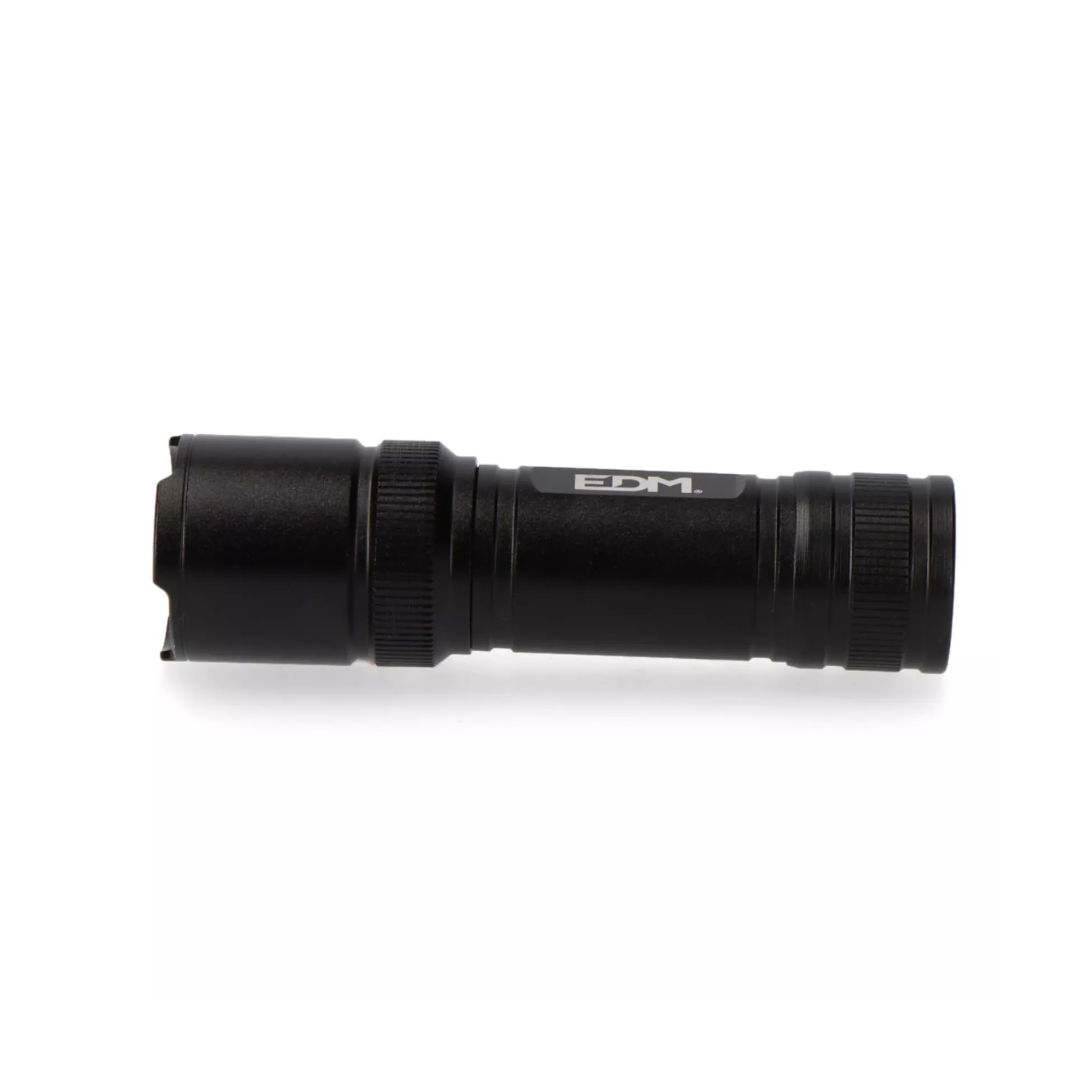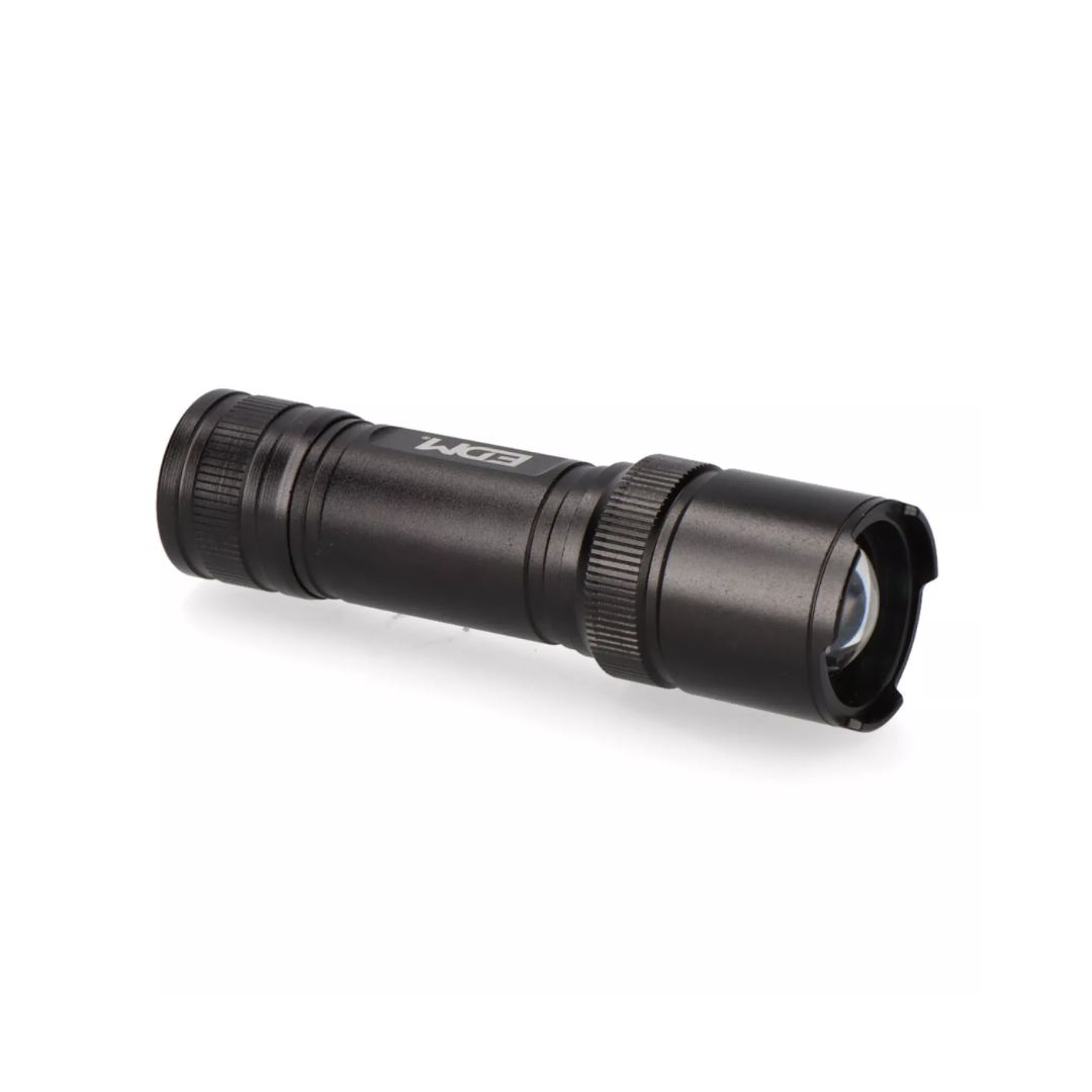Lanterna LED tática, feita me alumínio, 3w, 150lm, 6000k. Com zoom, extensível e funciona com 3 pilhas AAA. Duração de abteria 4h, inclui fio de segurança.