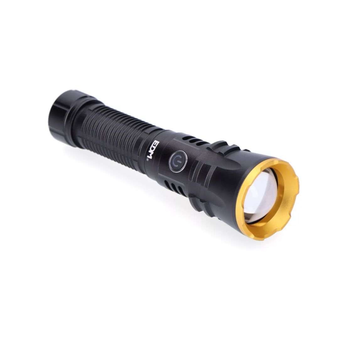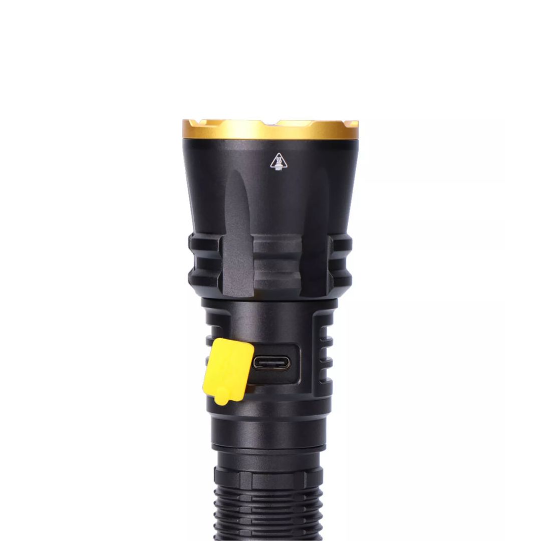 Lanterna LED de longa distância Wolf Prox3 com foco até 600m, IO65, 20w e  9000k. Com 3 modos: 1800 lm / 800 lm / 150 lm. Função Zoom, copro de alumínio. Inclui Cabo USB-C.