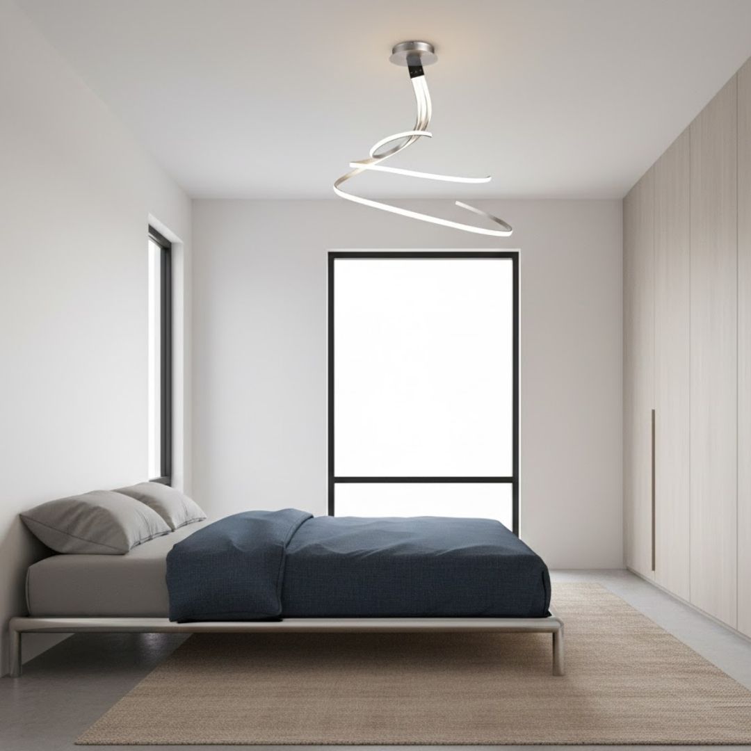 Voltas e mais voltas, traços simples limpos e ousados projetam o espaço com as luminárias Nur. Linhas simples desenhadas de forma elegante e minimalista, mas que desenvolvem iluminação LED nos seus modelos. Esta coleção é composta por diversas luminárias, de teto, mesa e apliques. Personalizadas e construídas sobre perfil de alumínio leve com difusor em policarbonato fosco e flexível que permite as voltas que caracterizam o seu design.