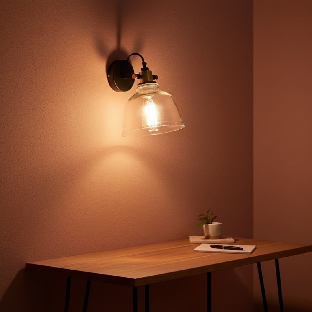 Irving apresenta estrutura em metal. Aplique disponível em preto, ambar e branco. Abajur em vidro ideal para qualquer espaço de sua casa.