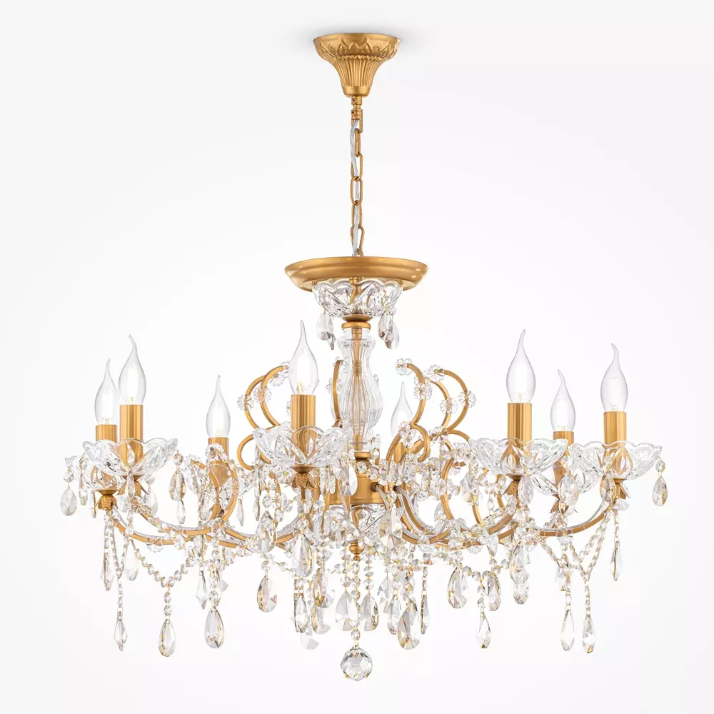 Maytoni Sevilla apresenta estrutura em dourado. Pendentes em cristal. Suspensão com estilo barroco!
