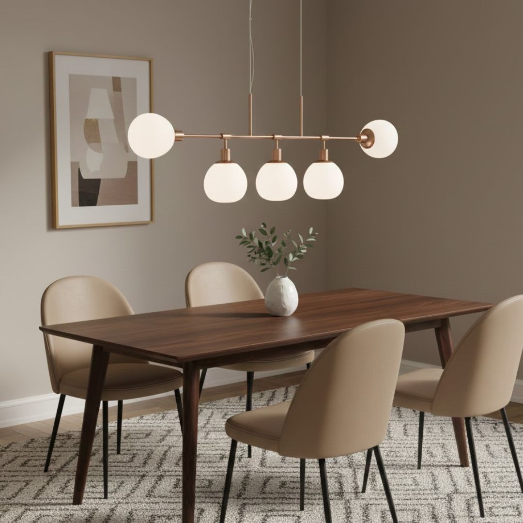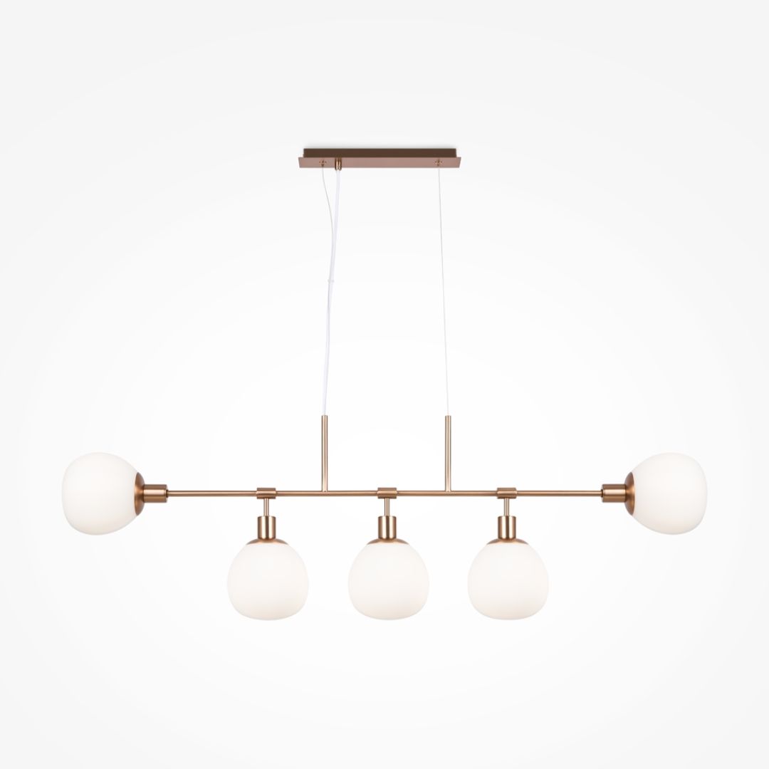 A coleção Erich, da Maytoni, agrupa pendentes, apliques, candeeiros de mesa e de pé num estilo que revisita o retro com elegância contemporânea. A estrutura metálica (latão rosa ou níquel) sustenta suaves globos em vidro opalino ou alabastro texturizado, oferecendo uma iluminação difusa e acolhedora. Cada peça permite ajustes de altura ou posição para máxima versatilidade. Ideal para salas, restaurantes, hotéis ou espaços de receção, Erich combina a severidade minimalista das linhas metálicas com a suavidade visual dos difusores, resultando numa presença estética marcante.