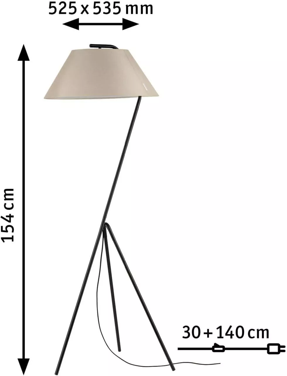 Este é um candeeiro de pé com um design minimalista e moderno. Ele possui uma estrutura de metal fina em preto, com três hastes que formam uma base tripé assimétrica, garantindo estabilidade ao mesmo tempo que confere um visual leve e elegante. O abajur, em forma de cone truncado, é feito de um material translúcido em tom bege ou areia, proporcionando uma iluminação difusa e aconchegante. O cabo de energia é discreto, saindo da base e mantendo o estilo limpo do design. Este candeeiro seria ideal para uma sala de estar contemporânea ou um espaço de leitura.