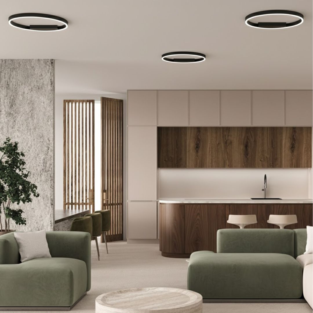 A coleção Rim da Maytoni caracteriza-se pela simplicidade sofisticada de anéis metálicos em preto ou dourado, com iluminação LED embutida. Disponível em plafons, apliques e suspensões com 1 a 3 círculos sobrepostos em diferentes diâmetros, a série permite composições visuais leves e modulares. Ideal para interiores modernos — desde salas e cozinhas até hotéis ou zonas de receção — oferece uma estética contemporânea refinada, valorizada ainda por materiais robustos, tecnologia LED eficiente e estrutura adaptável.