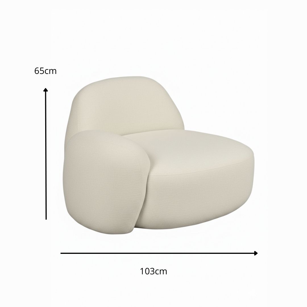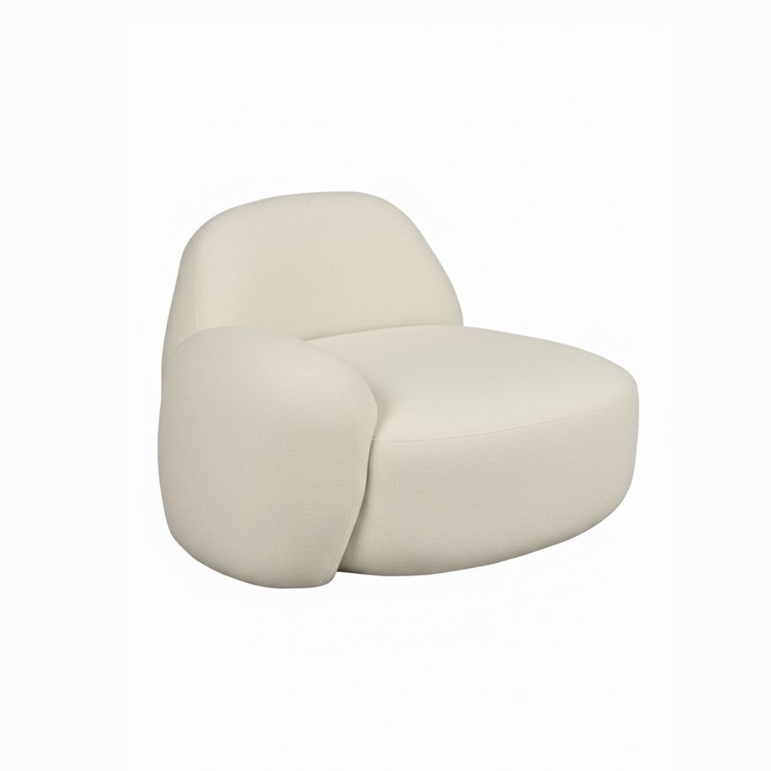 Esta poltrona de design orgânico combina a sofisticação das linhas curvas com o conforto absoluto do seu enchimento em espuma de alta densidade. Revestida num tecido de poliéster premium em tom bege, a peça oferece um toque suave e uma durabilidade excecional para o uso quotidiano. A sua silhueta moderna e minimalista adapta-se facilmente a qualquer ambiente, criando um ponto focal de elegância e bem-estar na sua casa. É a escolha perfeita para quem procura uma peça de mobiliário que une estética contemporânea a um refúgio de relaxamento acolhedor.
