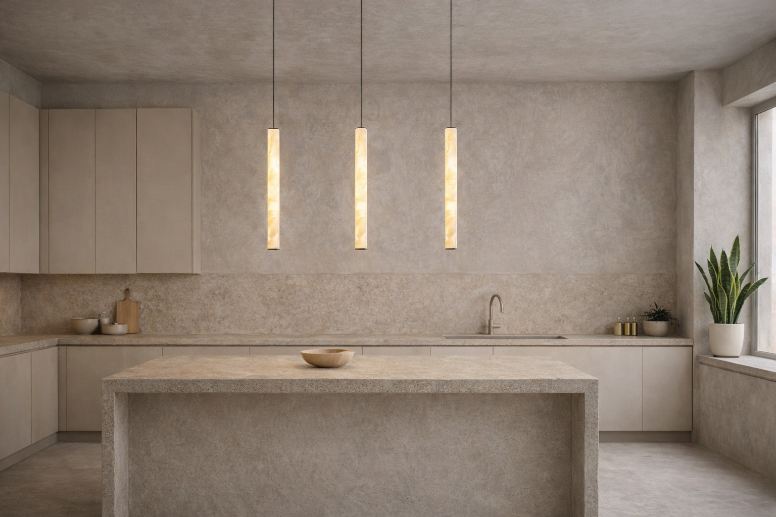 A suspensão Alabaster é um luxuoso candeeiro suspenso decorativo que confere elegância refinada e aconchego a qualquer interior. Fabricado em alabastro natural e alumínio com acabamento preto areia, equilibra a beleza crua do material com uma silhueta clean e contemporânea. Cada peça de alabastro é única, com veios naturais que difundem suavemente a luz, criando uma atmosfera de calma e elegância discreta. Ideal para composições de iluminação verticais ou como ponto focal em espaços que valorizam tanto a forma quanto a função. O LED integrado emite um brilho quente, proporcionando luminosidade com um elevado índice de reprodução cromática. Este candeeiro suspenso único é perfeito para realçar tons e texturas com clareza natural. Regulável através de Triac, permite um controlo fácil da intensidade da luz para se adequar ao momento ou ao ambiente. O cabo ajustável de 200 cm adiciona ainda mais flexibilidade na colocação, seja suspenso sobre uma ilha de cozinha, um corredor ou usado em múltiplos para uma iluminação dramática. O Alabaster é mais do que uma fonte de luz, é um elemento de design refinado que combina o luxo natural do alabastro com a inovação da tecnologia de iluminação moderna.