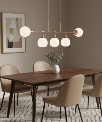 A coleção Erich, da Maytoni, agrupa pendentes, apliques, candeeiros de mesa e de pé num estilo que revisita o retro com elegância contemporânea. A estrutura metálica (latão rosa ou níquel) sustenta suaves globos em vidro opalino ou alabastro texturizado, oferecendo uma iluminação difusa e acolhedora. Cada peça permite ajustes de altura ou posição para máxima versatilidade. Ideal para salas, restaurantes, hotéis ou espaços de receção, Erich combina a severidade minimalista das linhas metálicas com a suavidade visual dos difusores, resultando numa presença estética marcante.