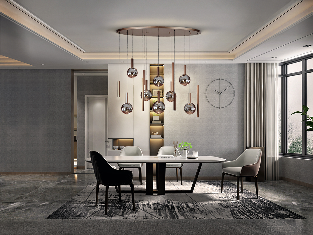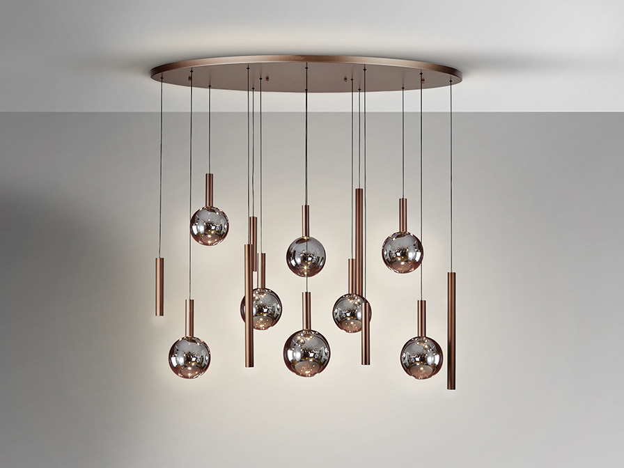 A coleção inclui 3 suspensões diferentes: suspensão individual, suspensão com 9 luzes e com 14 luzes.