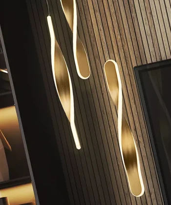 A Coleção Twist da Schuller é uma linha de luminárias com um design orgânico e fluido, inspirada em formas retorcidas e elegantes. Cada peça apresenta uma estrutura metálica disponível em acabamento preto fosco ou dourado escovado, combinada com difusores de silicone opal que suavizam a luz. As luminárias LED são integradas, todas com temperatura de cor de 3000k para uma luz quente e acolhedora. A coleção inclui pendentes de 1 a 5 lâmpadas, candeeiros de pé e de mesa, projetados para criar cenários luminosos sofisticados em salas, cozinhas ou espaços comerciais. As peças conferem uma presença decorativa marcante, equilibrando forma escultural e funcionalidade luminosa.