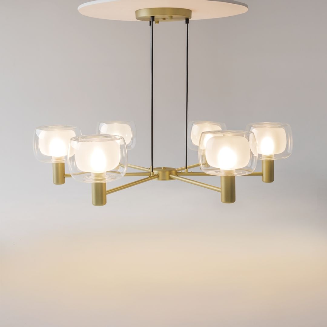 No centro da coleção Vision estão os abajures de vidro soprado duplo. O nome da série homenageia os vidreiros cuja visão apurada e habilidade excepcional lhes permitem alcançar uma consistência precisa nesta técnica complexa, produzindo abajures quase idênticos em forma. Inspirados no design italiano de meados do século XX, os elementos de vidro e metal apresentam silhuetas limpas e fluidas.
