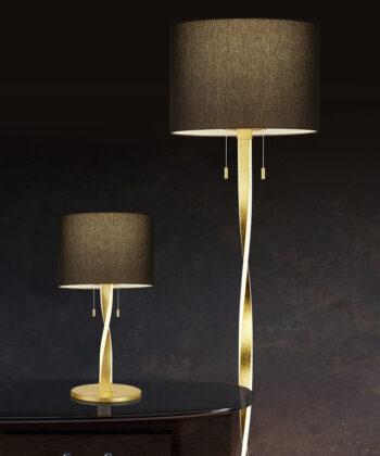 O candeeiro de pé NANDOR, com formas bonitas e cores coordenadas, integra-se perfeitamente em interiores modernos e clássicos. O elegante abajur em tecido é combinado com uma base de candeeiro curva para criar uma aparência geral harmoniosa. A base do candeeiro tem lâmpadas LED integradas e pode ser ligada separadamente do abajur com o casquilho E27. O candeeiro de pé com 160 cm de altura impressiona com o melhor resultado de iluminação possível para ler um livro e relaxar com os amigos ou como elemento decorativo na sua sala de estar. O abajur em tecido preto e o casquilho dourado curvo criam uma combinação de cores moderna que parece intemporal e elegante. A utilização de fontes de luz LED é recomendada para uma iluminação economizadora de energia. Estas são uma alternativa ideal às fontes de luz de halogéneo convencionais e oferecem uma elevada qualidade de luz e uma poupança de energia até 80%.